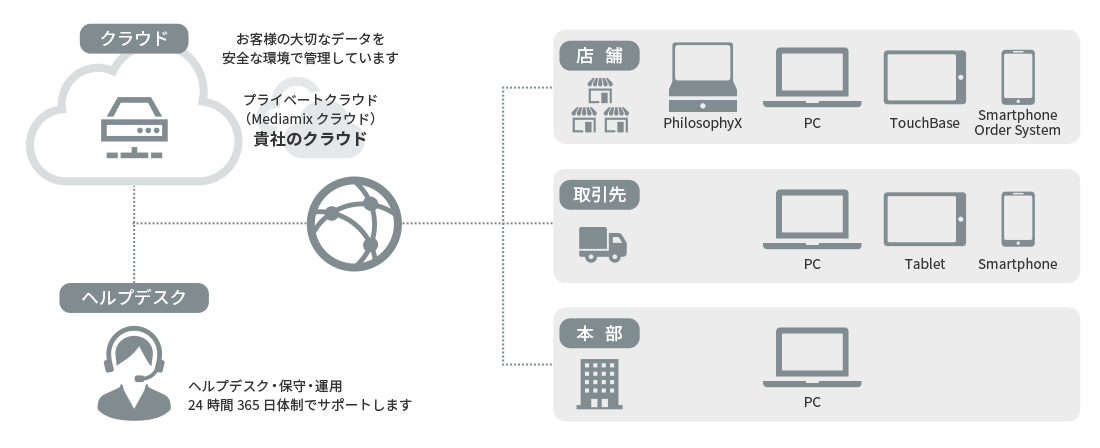 開店処理/売上処理/点検処理/精算処理/閉店処理/勤怠打刻 |
